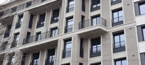На жилом комплексе, расположенном в Василеостровском районе СПб, были смонтированы ограждения балконов, террас, ограждения сплит-шахт,