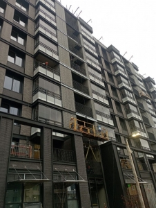 На жилом комплексе, расположенном в Василеостровском районе СПб, были смонтированы ограждения балконов, террас, ограждения сплит-шахт, а также выполнены рамы для последующего монтажа фасадных систем. Особенностью данных конструкций было использование в качестве покрытия порошковая окраска типа "муар", который создаёт эффект шероховатой поверхности, напоминающей наждачную бумагу.