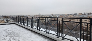 На объекте, расположенном на Васильевском острове, в финишную стадию входят работы по изготовлению и монтажу металлоконструкций различного назначения. Это и ограждения кровли, лестницы выходов на кровлю, площадки под вентоборудование, подсистема под фасады, ограждение лоджий и лестничных маршей, ограждения спусков в подвалы и т.д.